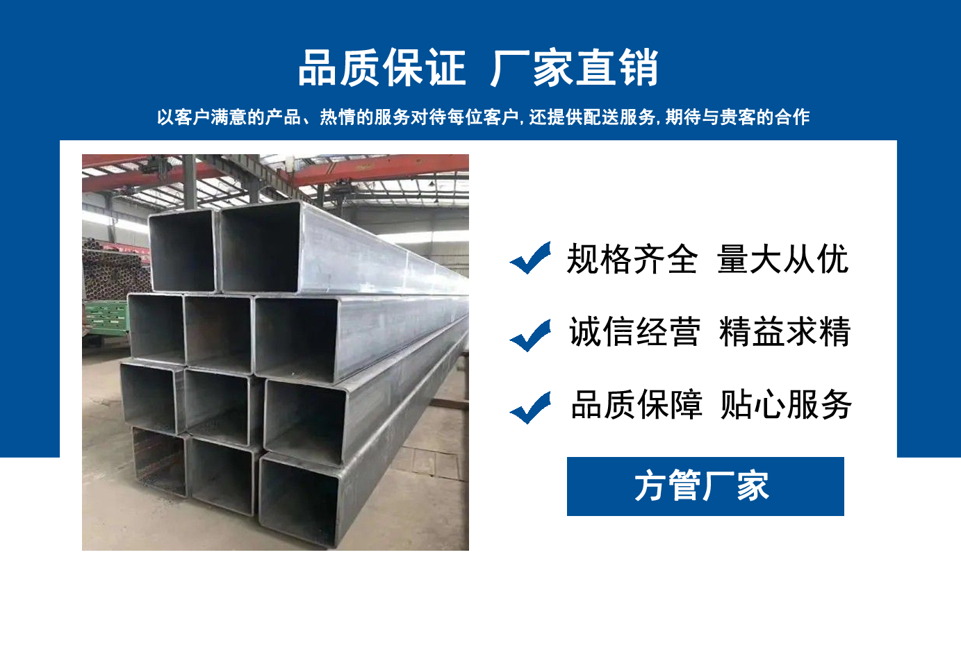 山東方管廠主要生產(chǎn)Q355B方管,Q355C方管,Q355D方管,Q355E方管,低合金方管等,曾多次為客戶解決了各種無縫管疑難問題,經(jīng)不斷的創(chuàng)新與努力,得到了客戶良好的信譽和稱贊。 公司秉承質(zhì)量、服務(wù)是我們尋求發(fā)展的唯一途徑,為客戶提供極具市場競爭力的高品質(zhì)產(chǎn)品,愿與客戶一起進(jìn)步、共享成功! 我公司秉承“誠信經(jīng)營,服務(wù)周到”的經(jīng)營原則,全力以赴,給客戶周到滿意的服務(wù)。“誠信、專業(yè)、認(rèn)真、服務(wù)”是我們的宗旨。幾年來我們用專業(yè)的技術(shù)和周到的服務(wù)贏得了廣大客戶和供應(yīng)商的信賴,與各大企業(yè)有著廣泛的合作和聯(lián)系,受到了業(yè)內(nèi)好評。我們會以優(yōu)良的產(chǎn)品、優(yōu)惠的價格、優(yōu)先的貨期、優(yōu)良的服務(wù),珍惜客戶給予我們的每一個機(jī)會。...